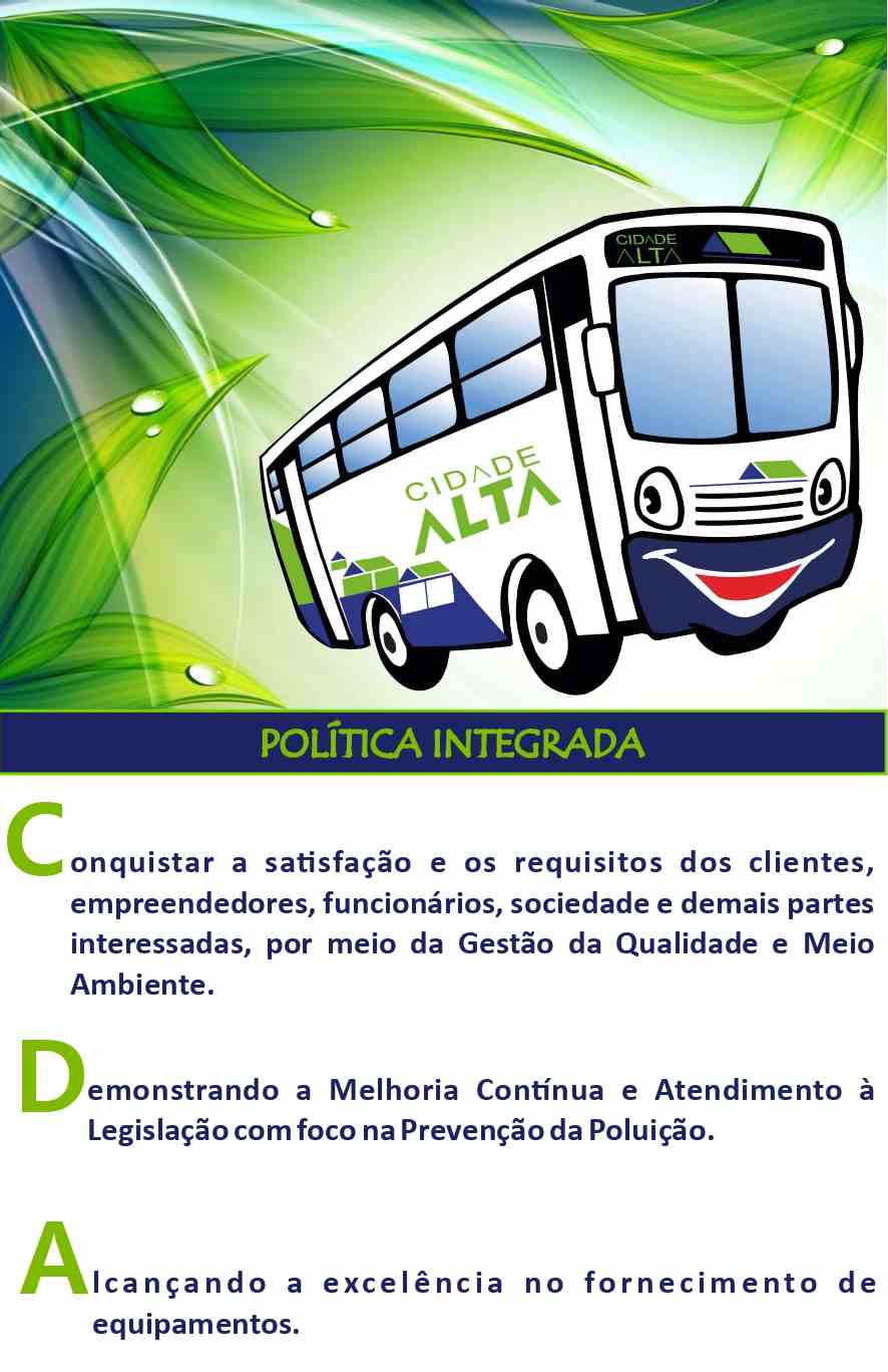 A empresa Cidade Alta segue os requisitos das NBRs ISO 9001 e 14001, por isso, a nossa Política Integrada