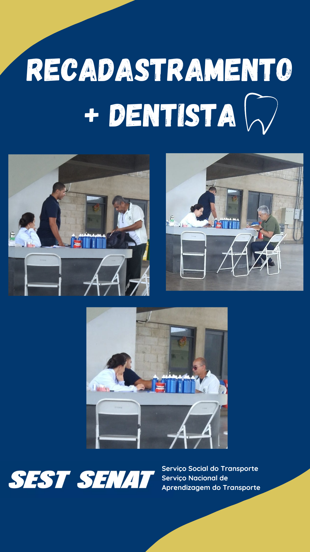 Em parceria com o SEST SENAT – Serviço Social do Transporte e o Serviço Nacional de Aprendizagem do Transporte, no dia 09/01 tivemos avaliações odontológicas gratuitas e o recadastramento dos colaboradores, desta forma, todos terão acesso gratuito a diversos serviços, como: odontologia, psicologia, nutrição, Fisioterapia, esporte e lazer. O SEST SENAT também oferece cursos especializados presenciais e a distância, nas mais diversas áreas de conhecimento que abrange da operação à gestão dos negócios.